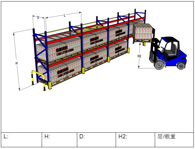 H2:是您所使用的叉車舉升高度,可以幫助我們,設(shè)計(jì)貨架的高度。