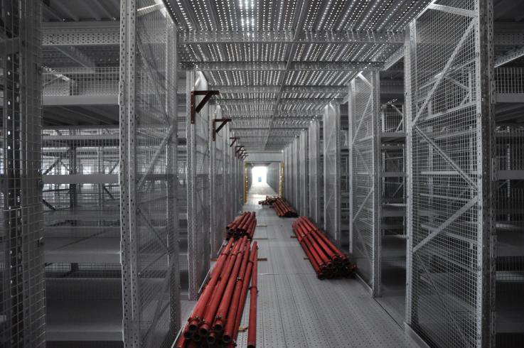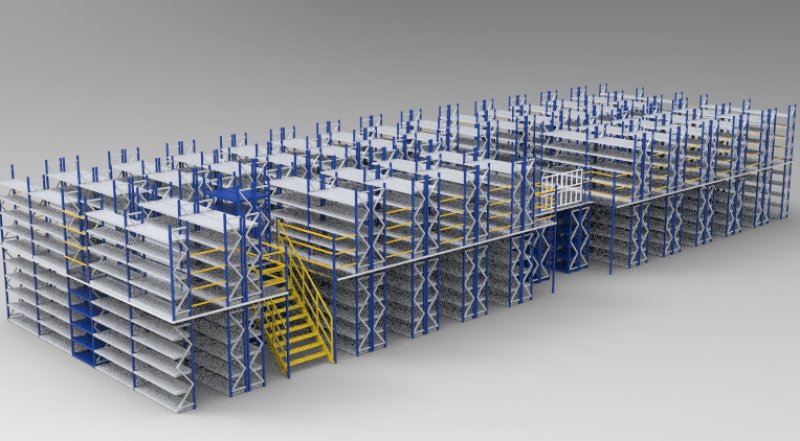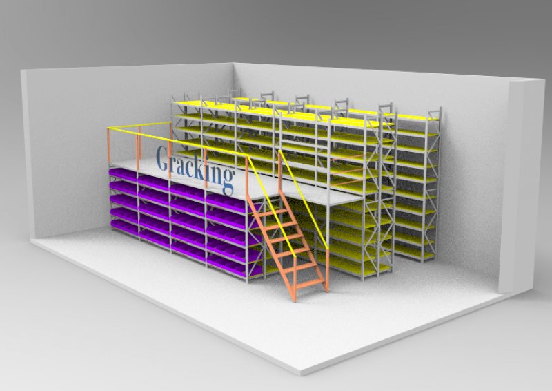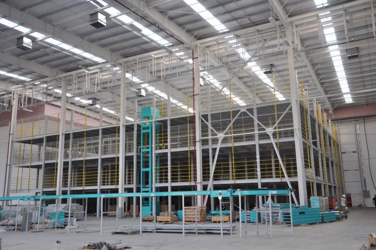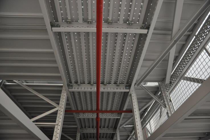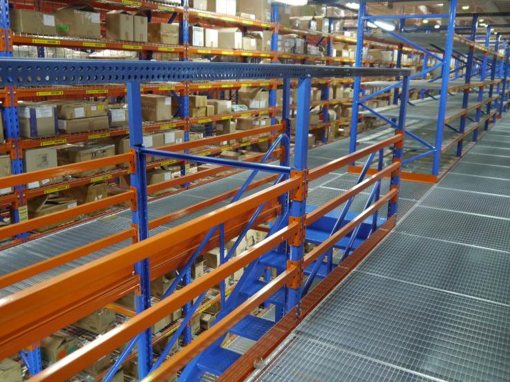 閣樓貨架系統(tǒng),通常利用中型擱板式貨架或重型擱板式貨架作為主體支撐加上樓面板(根據(jù)貨架單元的總負(fù)載重量來(lái)決定選用何種貨架),樓面板通常選用冷軋型鋼樓板、花紋鋼樓板或鋼格柵樓板。近幾年多使用冷軋型鋼樓板,它具有承載能力強(qiáng)、整體性好、承載均勻性好、精度高、表面平整、易鎖定等優(yōu)勢(shì).有多種類(lèi)型可選,并且易匹配照明系統(tǒng),存取、管理均較為方便。單元貨架每層載重量通常在500kg以?xún)?nèi),樓層間距通常為2.2m~2.7m,頂層貨架高度一般為2m左右,充分考慮工作人員操作的便利性。