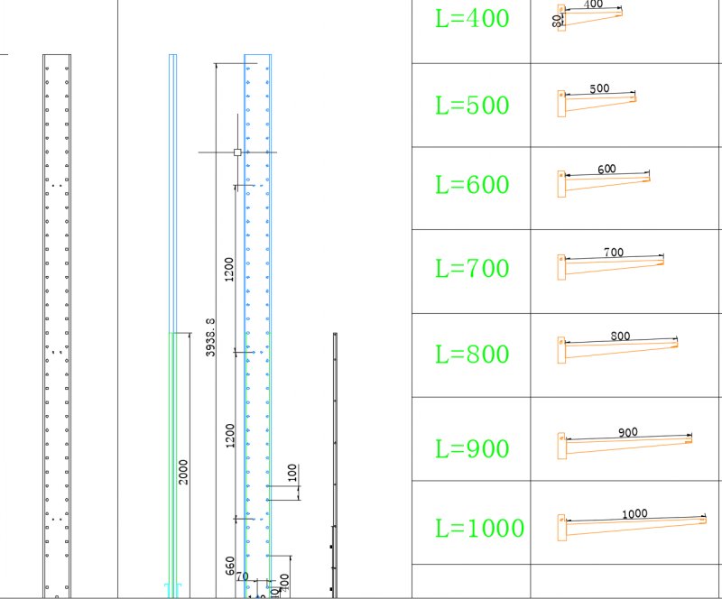 中型懸臂貨架適用于存放長物料、環(huán)型物料、板材、管材及不規(guī)則貨物。懸臂可以是單面或雙面,懸臂式貨架具有結(jié)構(gòu)穩(wěn)定,載重能力好、空間利用率高等特點。 懸臂式貨架多用于機械制造行業(yè)和建材超市等。加了擱板后,特別適合空間小,高度低的庫房,管理方便,視野寬闊,利用率比普通貨架更高。懸臂式貨架是在傳統(tǒng)式貨架支柱上裝設(shè)外懸臂而成,是一種長形物專用的貨架。 中型懸臂貨架,主要是指高度在3000mm以內(nèi),單層載重1000kg以內(nèi)的。這樣的高度參數(shù),和承載要求。貨架的立柱通常使用300*90mm,懸臂采用120*90的材料制作而成的。 存取貨物采用人工存放為主,多數(shù)不采用叉車配套使用。通道寬度設(shè)計為1400mm以內(nèi)為更好。