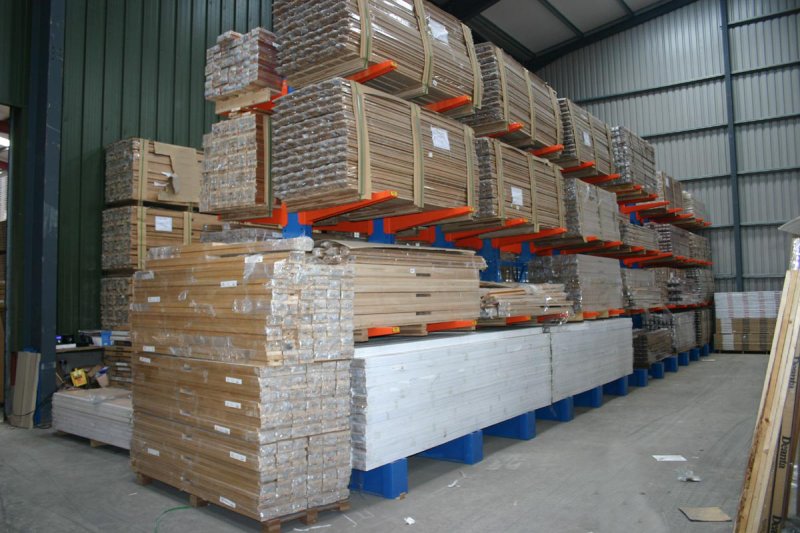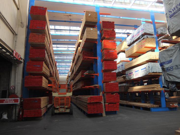 放置木材和建材產(chǎn)品的懸臂貨架。