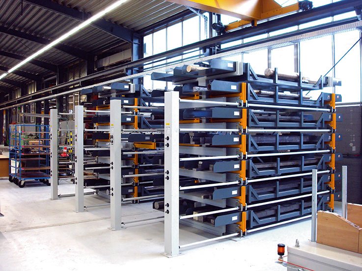 金屬管材存放貨架的伸縮移動(dòng)式結(jié)構(gòu),特別為行車存放貨物而設(shè)計(jì)研發(fā)的,行車存放長貨物 管材 棒料 軸 桿 型材 鋼材等可以節(jié)省叉車及巷道還有轉(zhuǎn)彎時(shí)占用的空間,6米、12米的貨物要預(yù)留好幾米的空間但使用行車存放只要預(yù)留懸臂伸出的空間就可以了 如何能夠?qū)⒘鑱y的倉庫整理的更加整潔,存儲(chǔ)更便捷呢